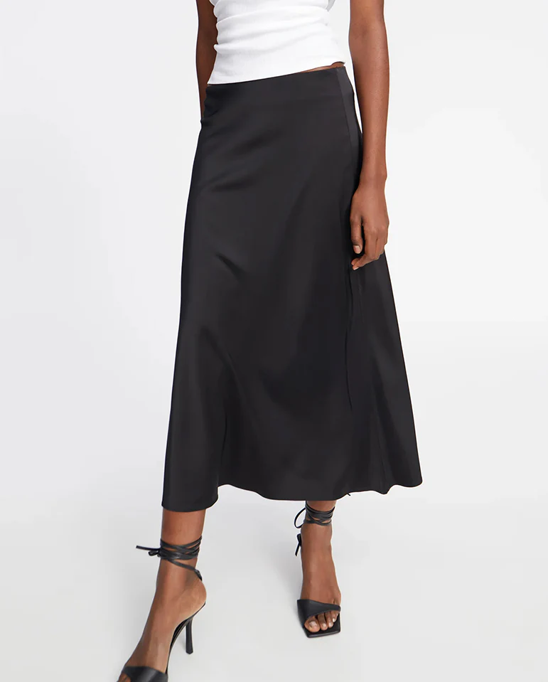 Beautiful midi skirt made from a sustainable viscose blend, designed for a regular fit with an elastic waistband.