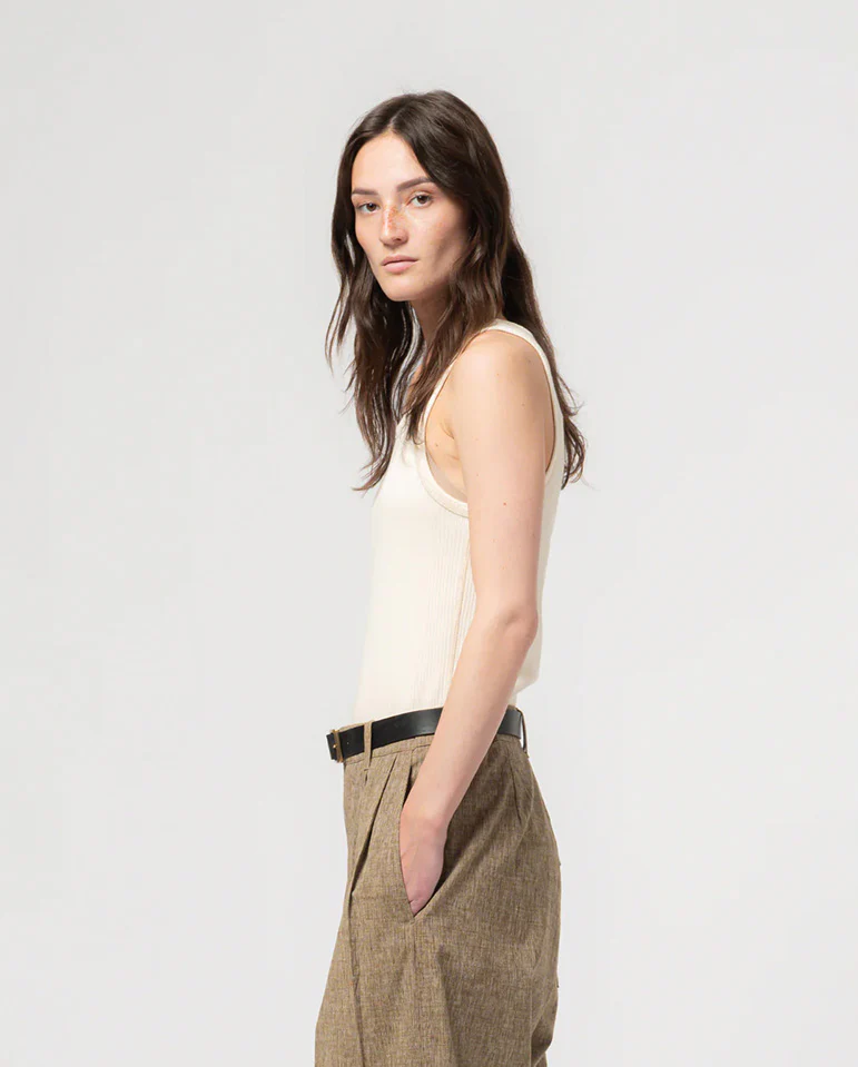 A sleek ribbed jersey tank, designed as an essential layering piece...Ā