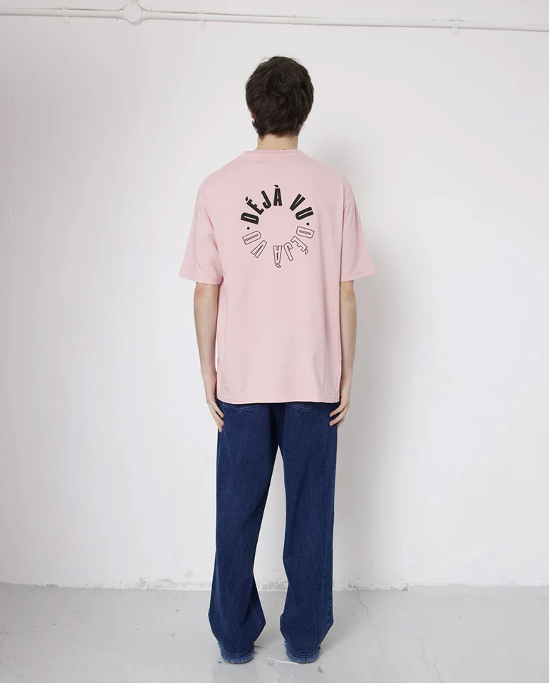 Pink T-shirt with a soft wash finish and slightly brushed surface, giving it worn-in feel from the first wear. Finished with a pigment dye treatment, each piece carries natural colour variation, creating a unique, lived-in character that evolves over time.Ā