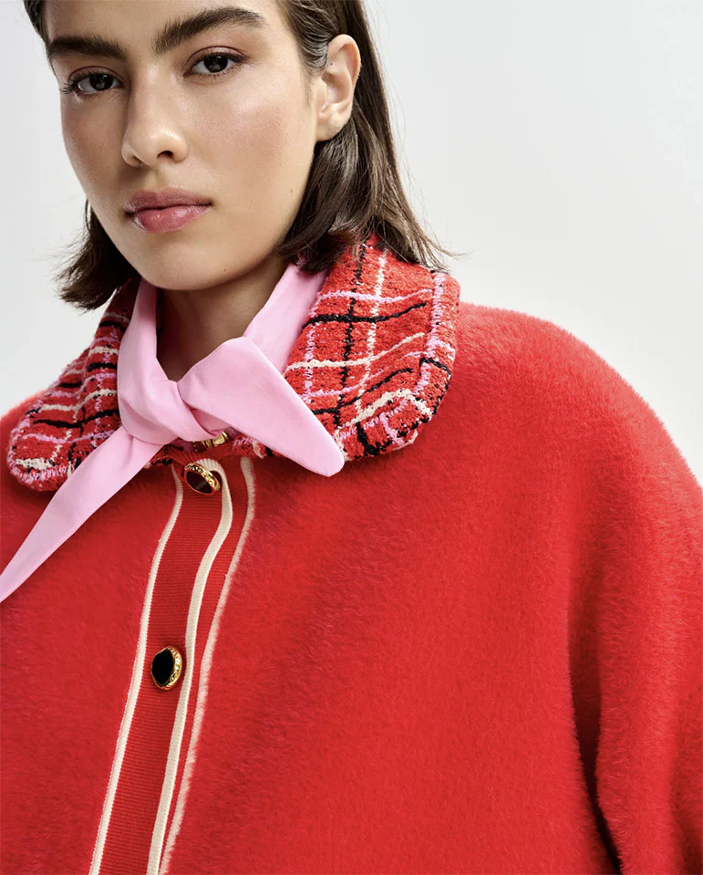 Designed for a relaxed fit, this Essentiel Antwerp cardigan is crafted from a soft and textured fabric. It features a contrast tweed collar and matching patch pockets, gold-tone button fastening and dropped shoulders.Ā