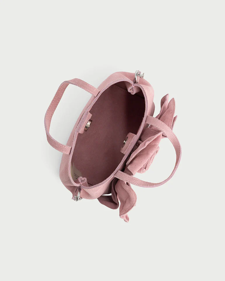 Carry the orchid shaped Orchidee Suede Bag by your side for a summer date, a garden party, or brunch with friends.