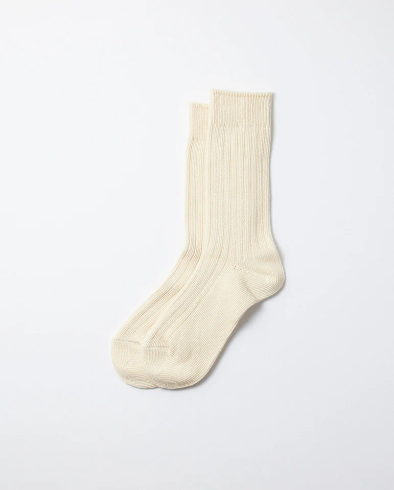 Three pack of ribbed, double face and fine rib crew socks, handcrafted in Japan using traditional manufacturing techniques for maximum comfort.